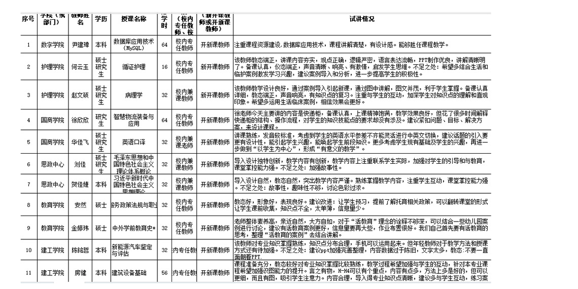 2023-2024学年第二学期新开课和开新课教师试讲情况