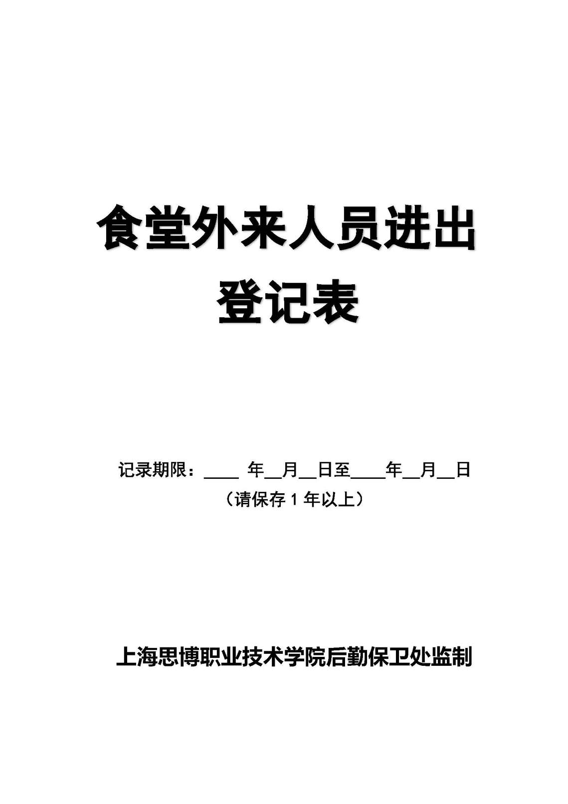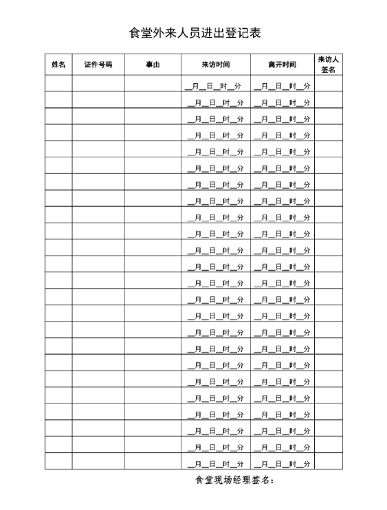 食堂外来人员进出登记表