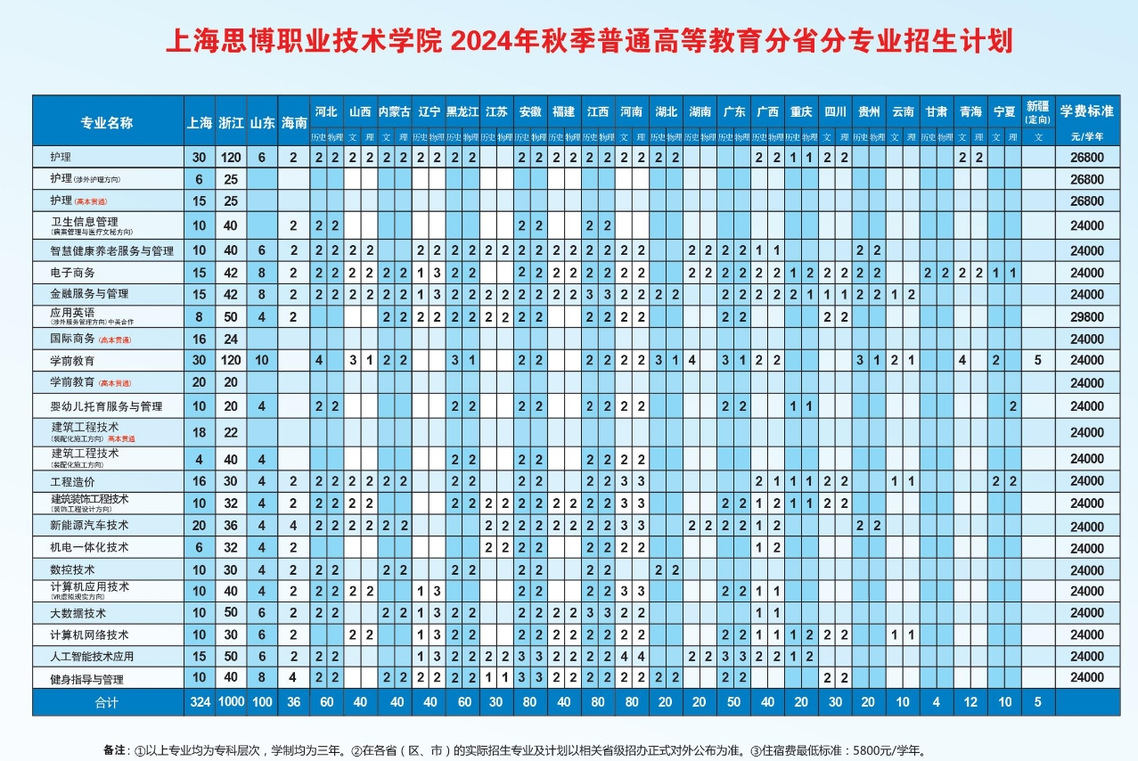 上海思博职业技术学院2024年全国统考招生计划与历年录取成绩