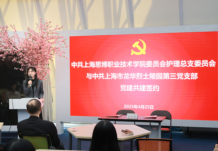 签约会上,副校长兼卫生技术和护理学院创始院长沈小平在讲话中,回顾了我校与上海龙华烈士陵园长期以来的沟通协作历程,并对此次党建合作给予了高度评价。他指出,此次共建是学校党建工作的创新举措,将为学校师生提供更为丰富的红色教育资源和实践平台。学校将以此为契机,进一步加强与陵园的深度合作,共同开展形式多样的党建活动,引导学生树立正确的世界观、人生观和价值观,培养有理想、敢担当、能吃苦、肯奋斗的新时代青年。