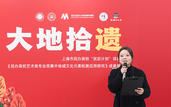 12月25日,由我校徐悲鸿艺术学院郑舒文老师主持的“大地拾遗”暨上海市民办高校“民匠计划”项目《民办高校艺术类专业竞赛中地域文化的拓展应用研究》成果展开幕式在徐悲鸿艺术学院3号楼展厅举行。