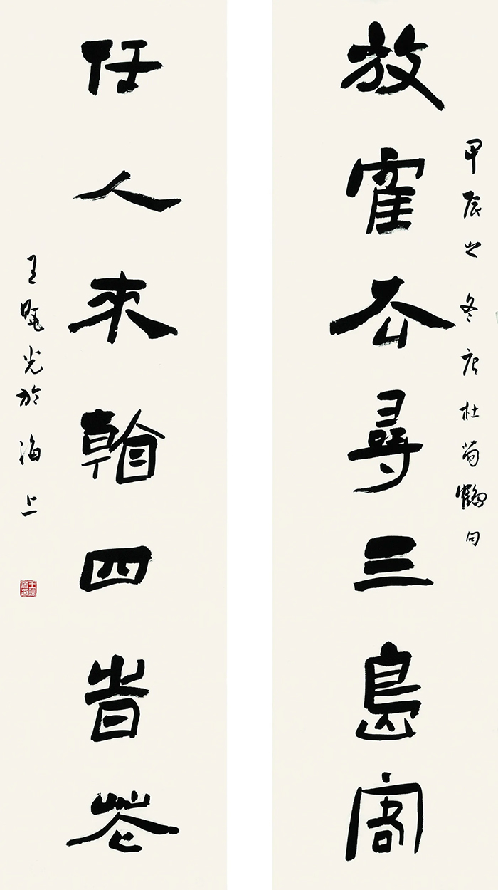 近日,上海市第十三届书法篆刻大展在上海龙现代美术馆开幕。本届展览由上海市文联、上海市书法家协会、宝山区委宣传部主办,宝山区文旅局、宝山区文联、宝山区书协和龙现代美术馆协办。我校王晓光老师的书法对联《放鹤任人七言联》作为特邀作品参展。